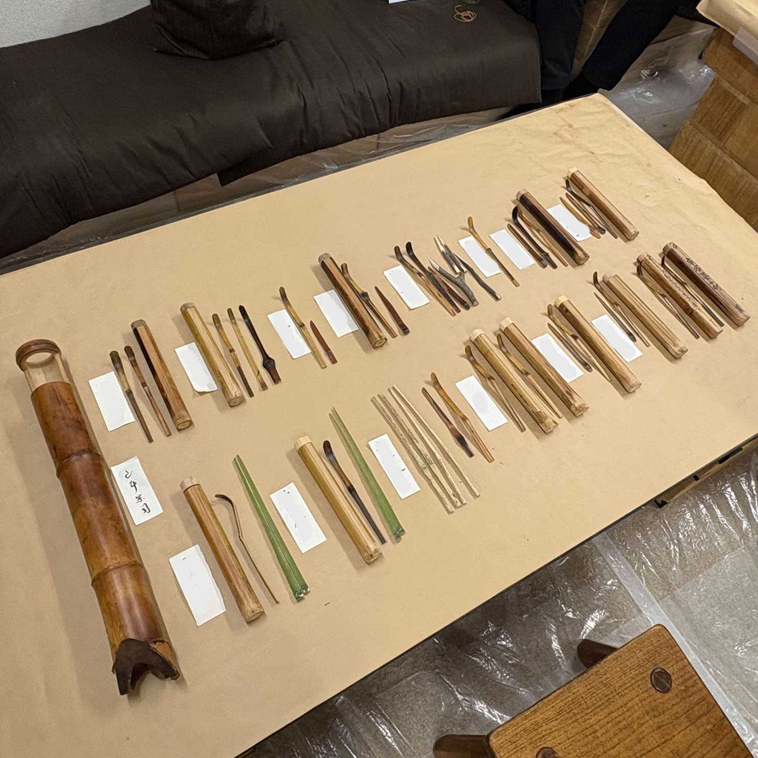 長期間準備した貴重な煤竹と先生の作品・素材をお渡しするため、